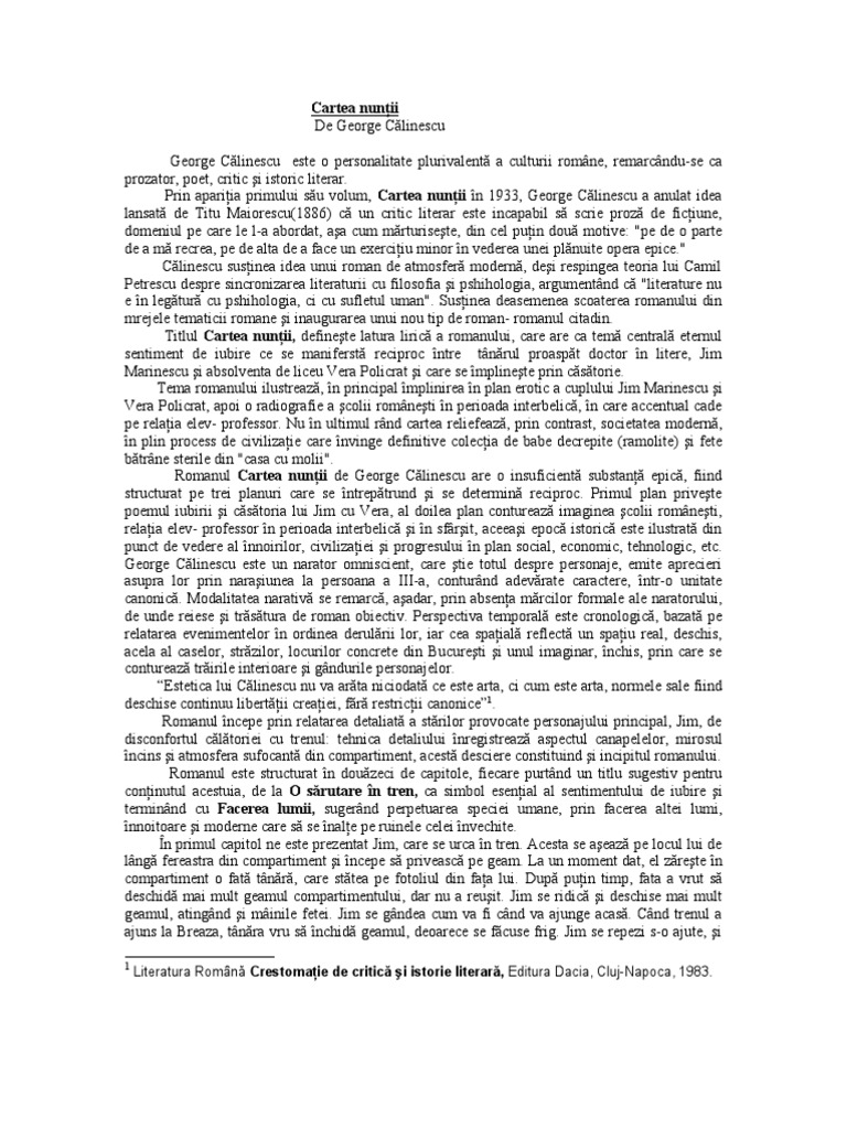 As critic he is considered one of the best and as writer he is deservedly appreciated. Cartea nuntii george calinescu on *free* shipping on qualifying offers. Cartea nunţii, de george călinescu. Iată câteva citate din romanul cartea nunţii de george călinescu. Dramatizare radiofonică de nicolae neagoe.
