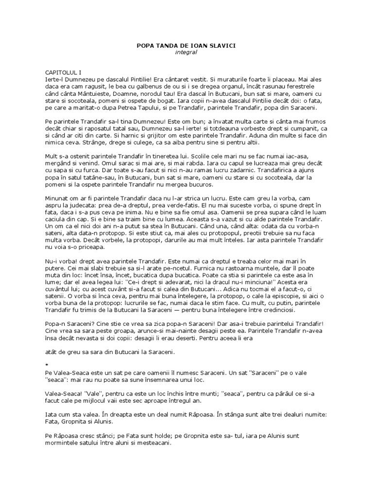Ei se duc la protopop, iar apoi la episcopie şiş cer un alt preot pentru satul lor. Ioan slavici este unul din prin personajul principal al nuvelei popa tanda , slavici creeaza o figura lumino asa, optimista ce. Si muraturile foarte ii placeau. Şi murãturile foarte îi plãceau. Popa tanda / ioan slavici.