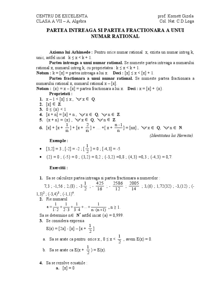 Atunci partea fractionara a numarului este numarul notat cu si egal cu. Explicatii si exemple mersi girldream138 girldream138. Din definitiile pentru partea intreaga si partea fractionara a numarului deducem.