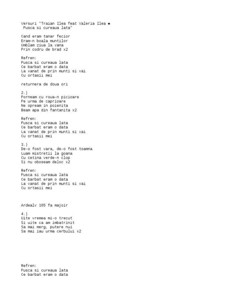 So ii valeria traian ilea. Musicmondoromania puiu codreanu lele craciunescu si lusu pusca si cureaua lata. Pusca si cureaua lata ce barbat eram o data la vanat de prin munti si vai cu ortasii mei.