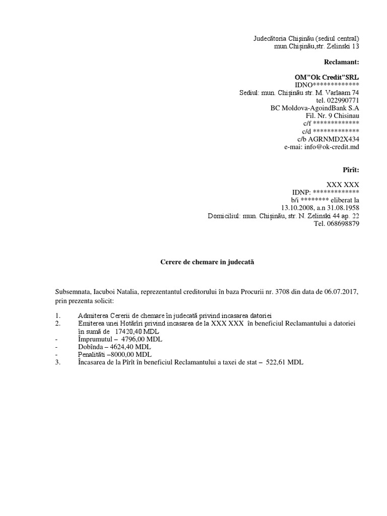 Procedură Civilă Cerere De Chemare In Judecata Model Md